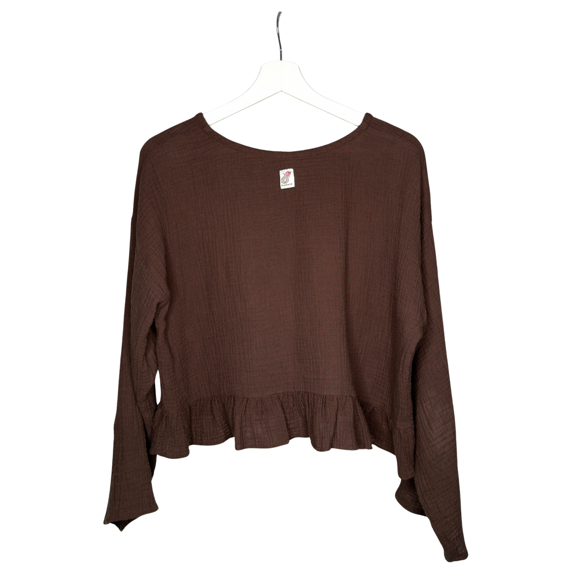 Weich, luftig und einfach schön – diese handgenähte Bluse aus Baumwoll-Musselin wird schnell zu deinem neuen Lieblingsstück. Der feine, strukturierte Stoff liegt angenehm auf der Haut und sorgt für ein wunderbar leichtes Tragegefühl – das ganze Jahr über.