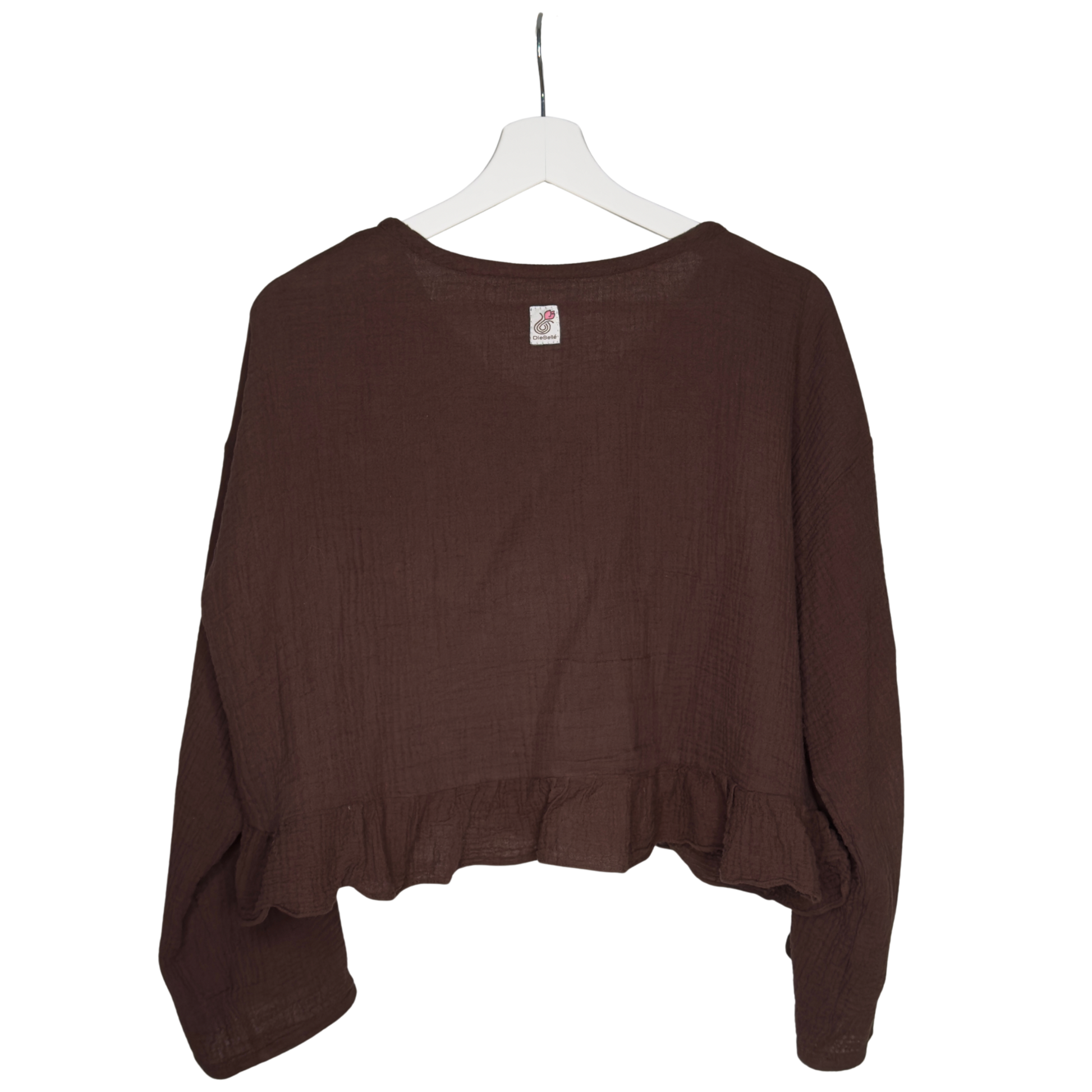 Leicht, weich und mit einer Prise Verspieltheit – die handgenähte Musselinbluse bringt natürliche Eleganz in deinen Alltag. Sie überzeugt mit einem wunderbar weichen Griff und einer lockeren, fließenden Passform.